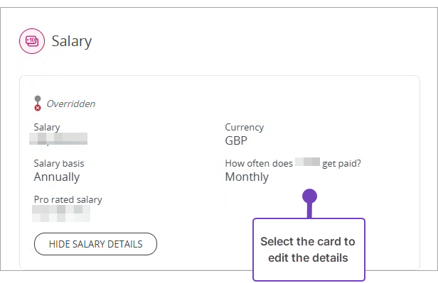 - By default, the salary will be inherited. Toggle the padlock to on to make changes:
