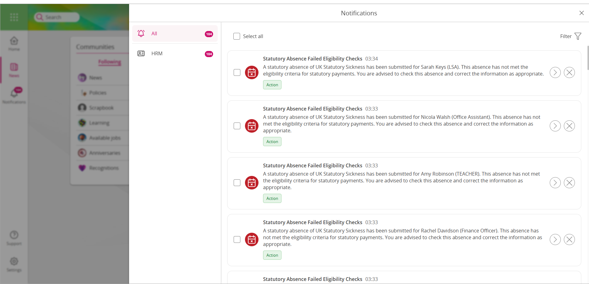 - In the case of People First Payroll, Unactioned items could prevent the payroll from being finalised at month end. The consequences of this delay could include: