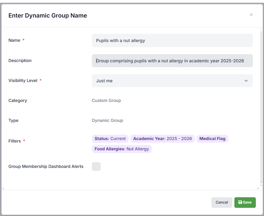 - If you want to receive alerts when pupils join and leave the group within the dashboard widget, check Group Membership Dashboard Alerts. See MIS: Where can I see changes made to my dynamic group? for further information.
