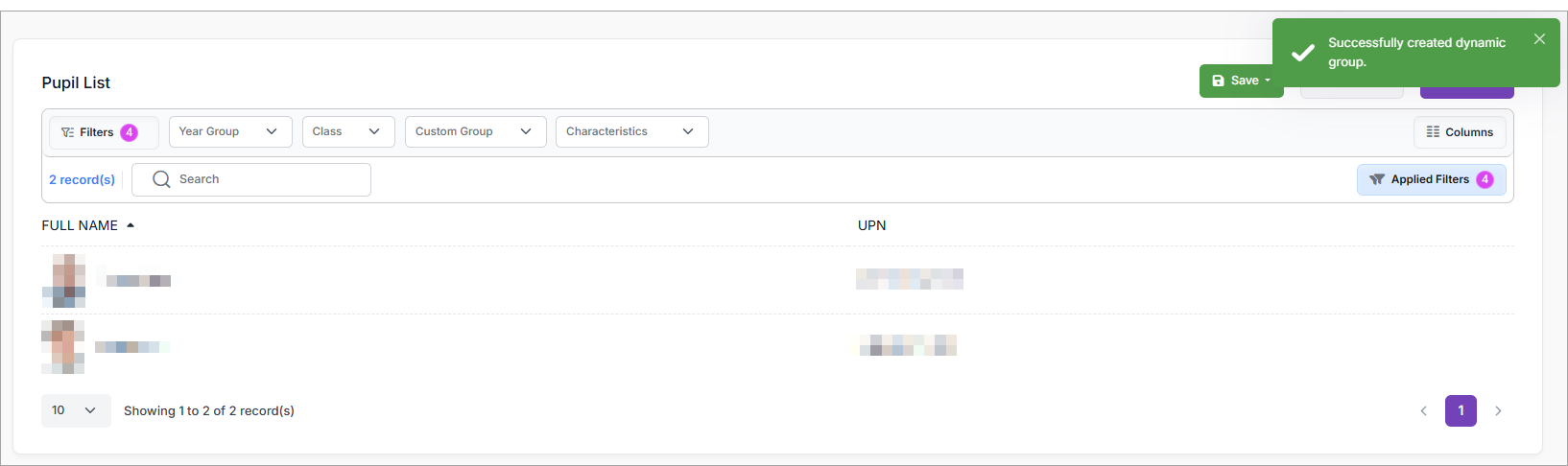 Pupils will be added to / removed from the list dynamically based on the filters you selected.