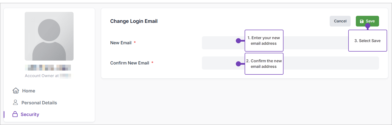 Your changes will be saved, and the email that you use when logging in will be updated.