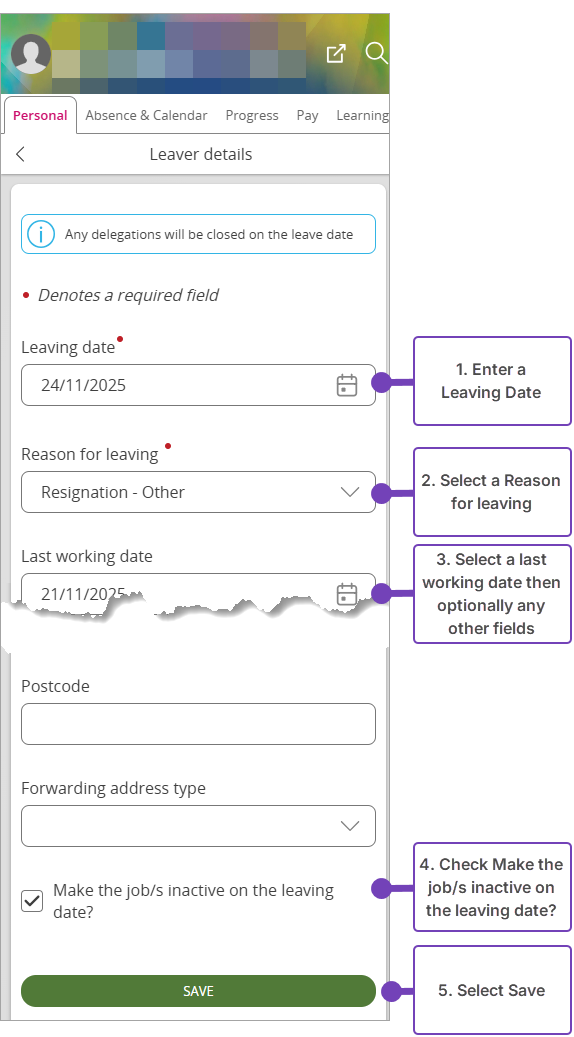 - Complete the Leaver details: