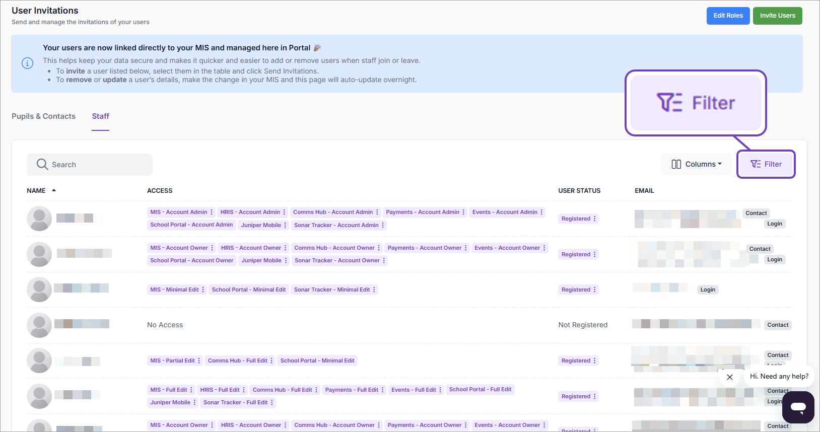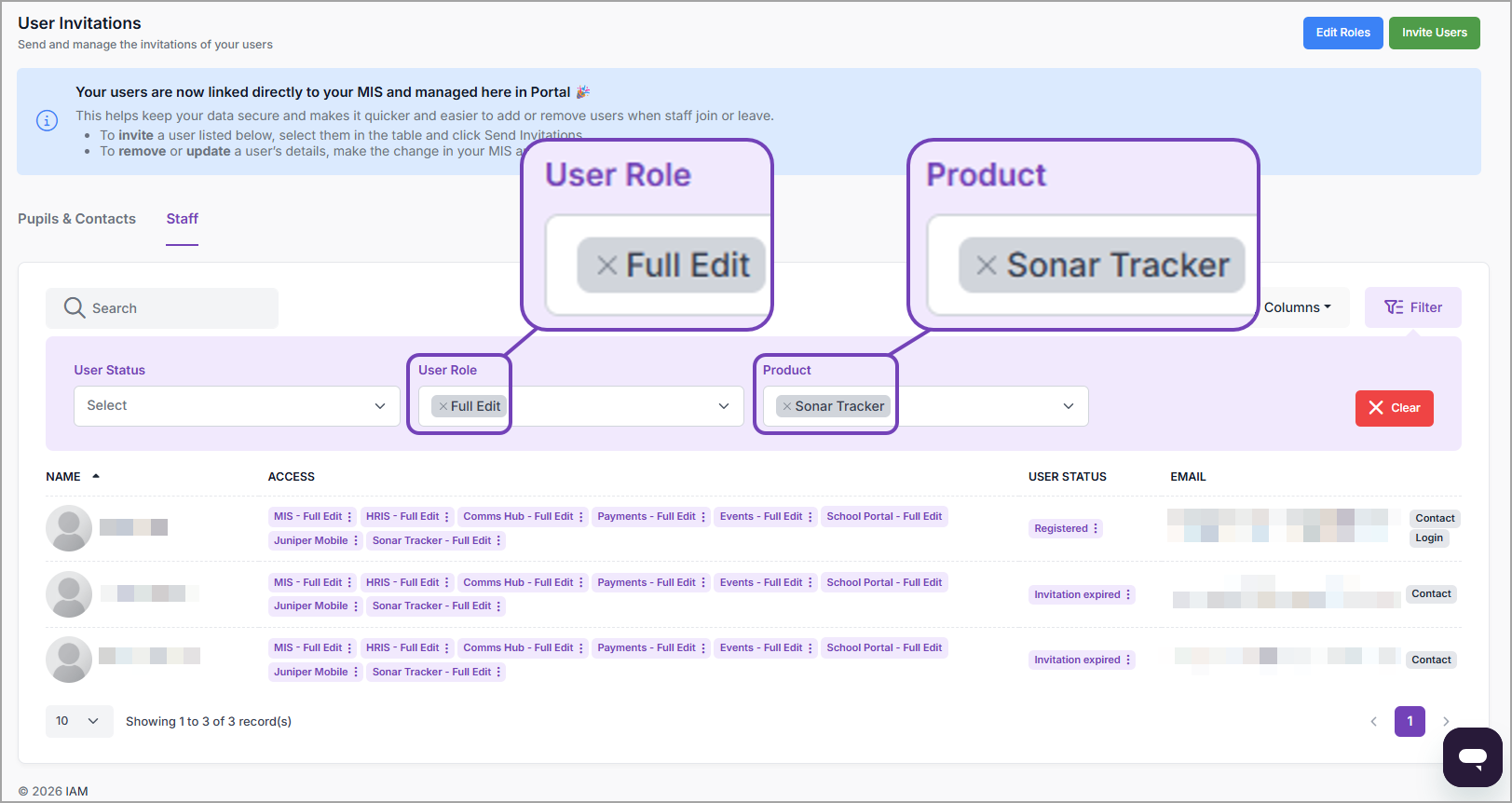 This article explains how to view a list of users who have been assigned a specific role through Portal, using filters in the User Invitations / Staff page.