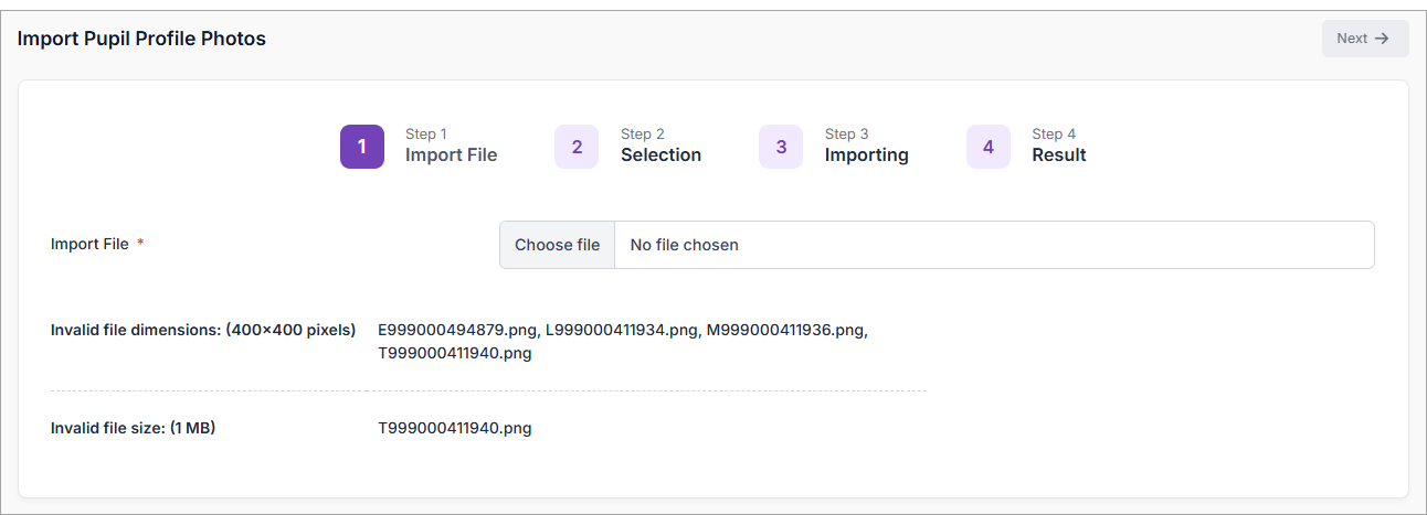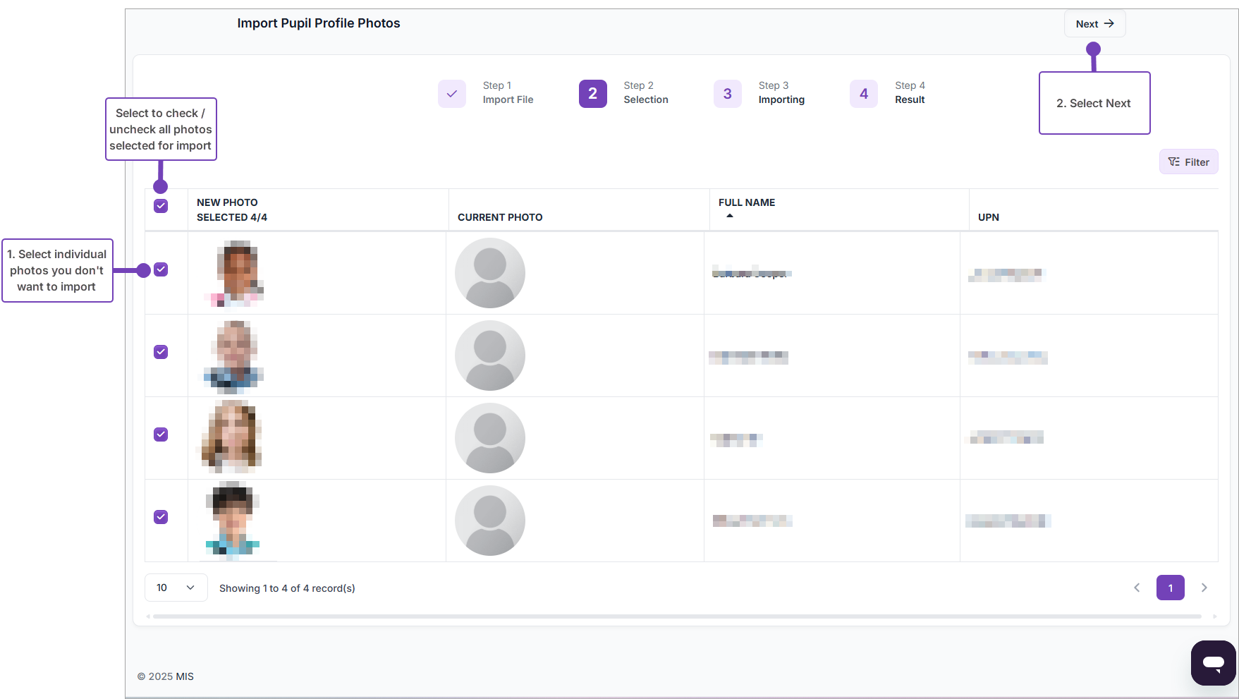 - Ensure that the pupils and photographs are correctly matched. Uncheck any photographs that you do not want to import.