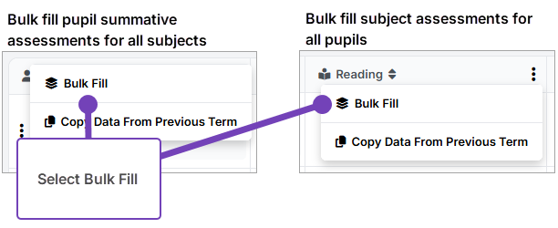 This article explains how to use the bulk fill feature to speed up summative assessment data entry. Bulk filling can be used for filling all summative assessment data for: