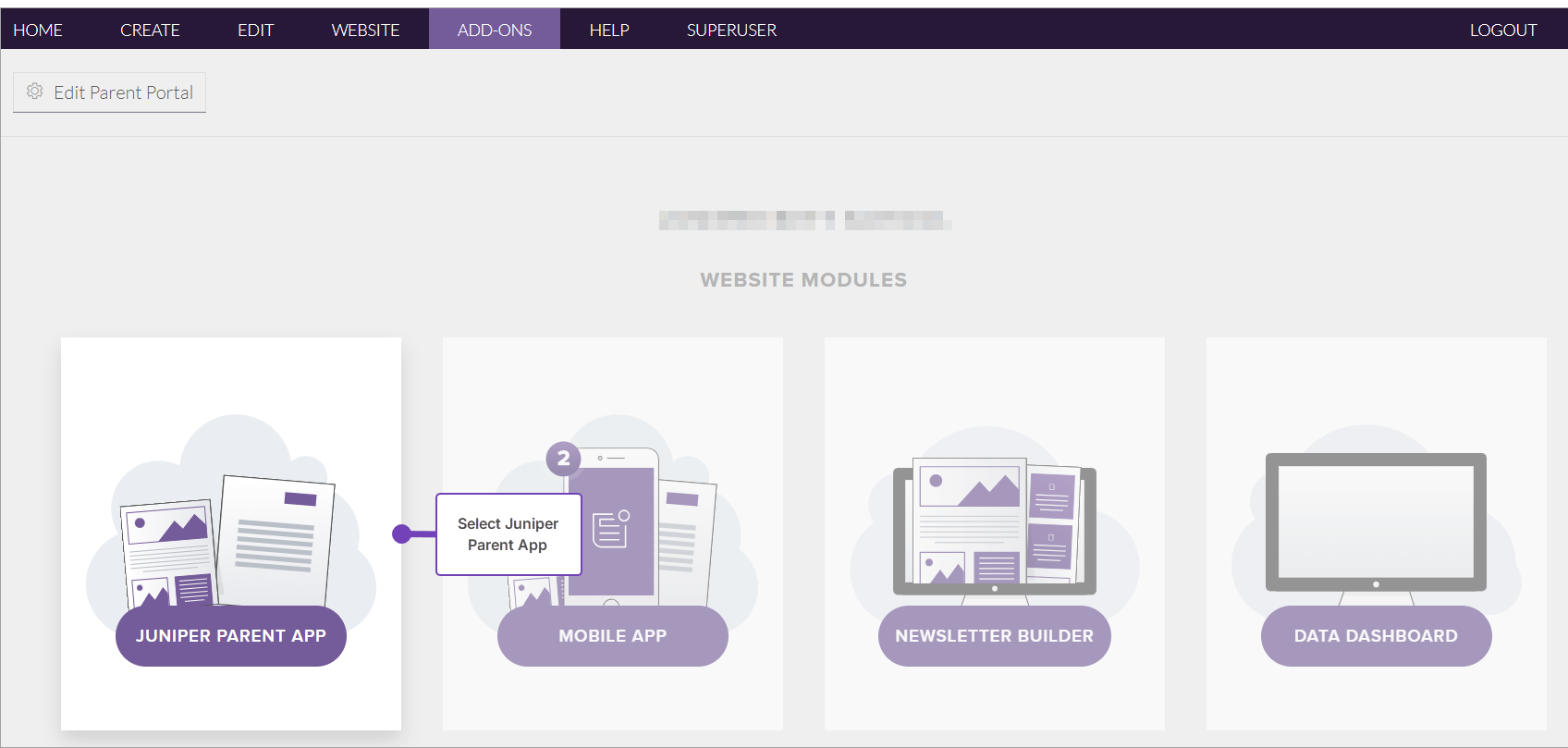 2. From Add-Ons, select Juniper Parent App: