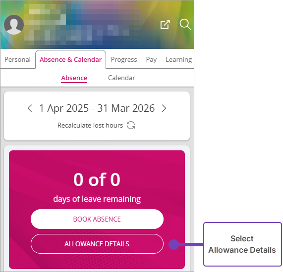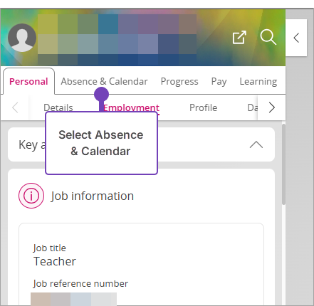- From the employee's Profile, select the Absence & Calendar tab: