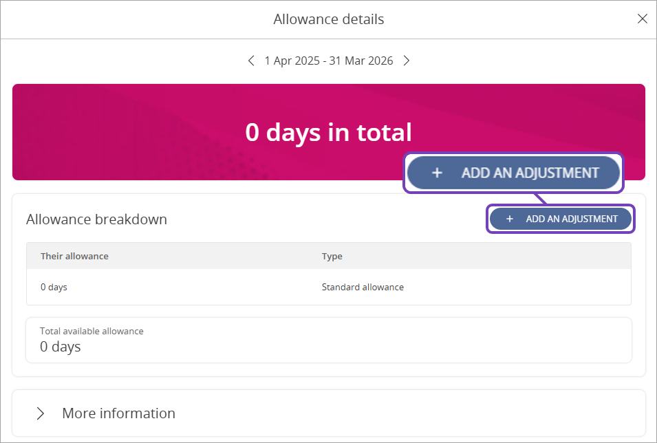From Allowance details, select Add an adjustment: