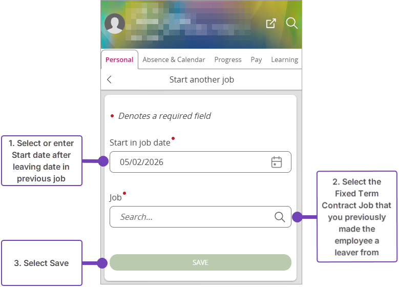 - Select or enter a Start in job date that is after the leaving date in the job above.