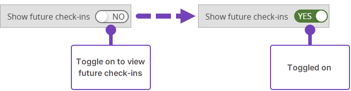 A list of current or past check-ins is shown. To view any future scheduled check-ins, toggle Show future check-ins to Yes: