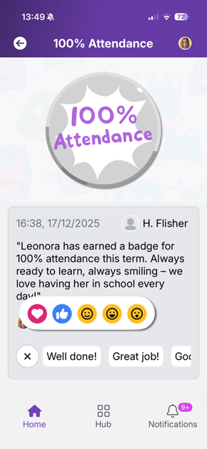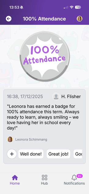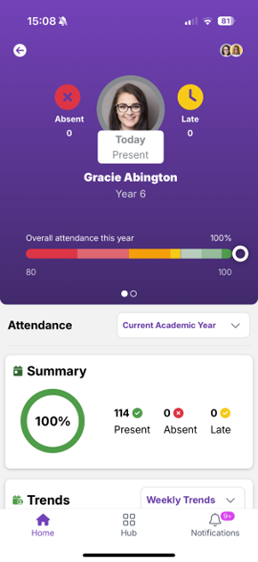 Attendance An optional section, this can be disabled if required. Parents can see overall attendance information from your connected MIS.