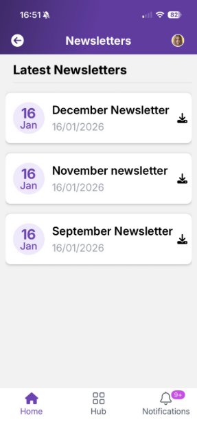 From the Award view, interact with the award, using emojis or predefined messages. Home screen widgets News Newsletter Calendar