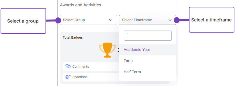 - Select the Timeframe (from Academic Year, Term, Half Term).