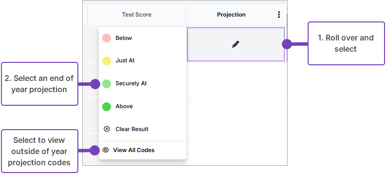 3. Select the appropriate end-of-year projection code for the pupil or select View All Codes.