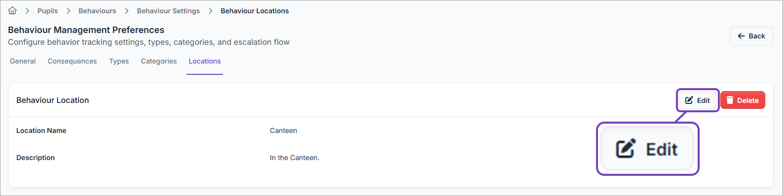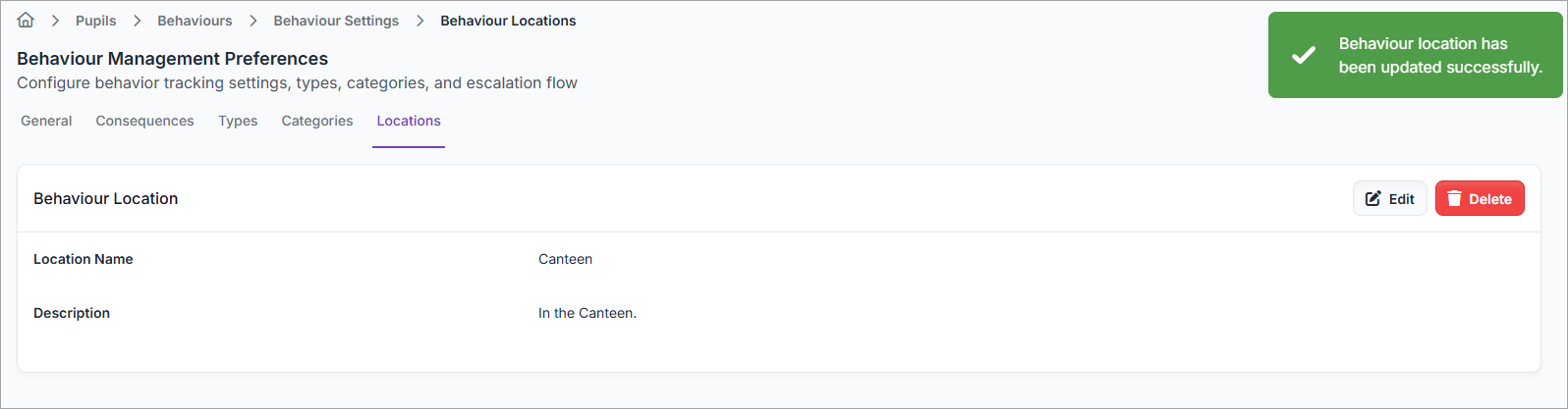 Edit / update a Behaviour Location