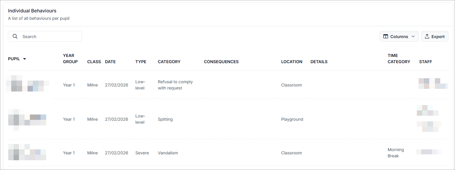- MIS: How do I export a list of all recorded behaviour incidents?