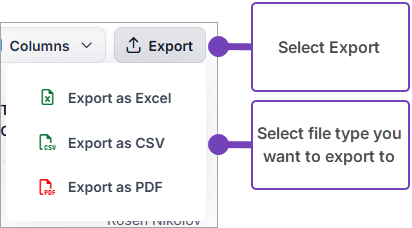 Optionally select Columns and check /uncheck the information that you want to display and include / exclude in the export file: