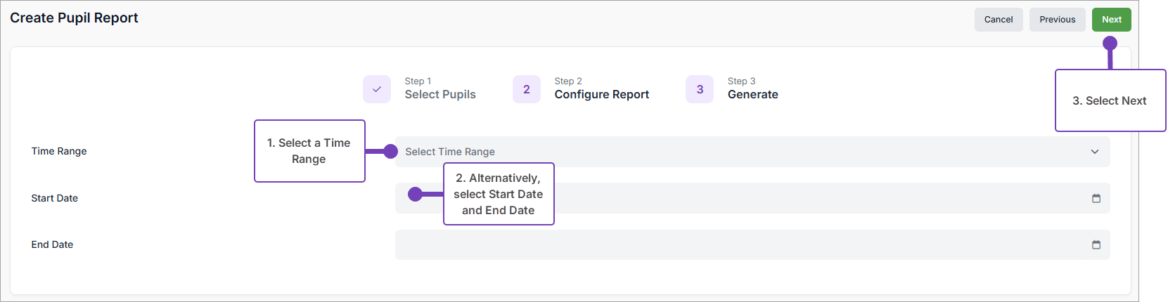 5. From Create Pupil Report - Step 2 - Configure Report: