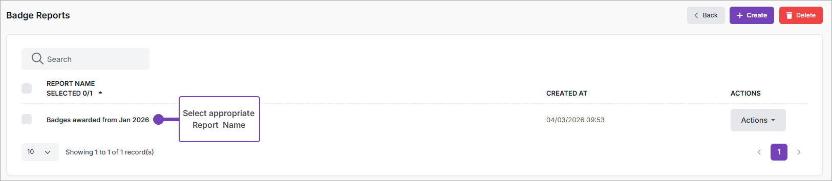 From the Reports page that opens, for example, Badge Reports or Pupil Reports, select the appropriate Report Name: