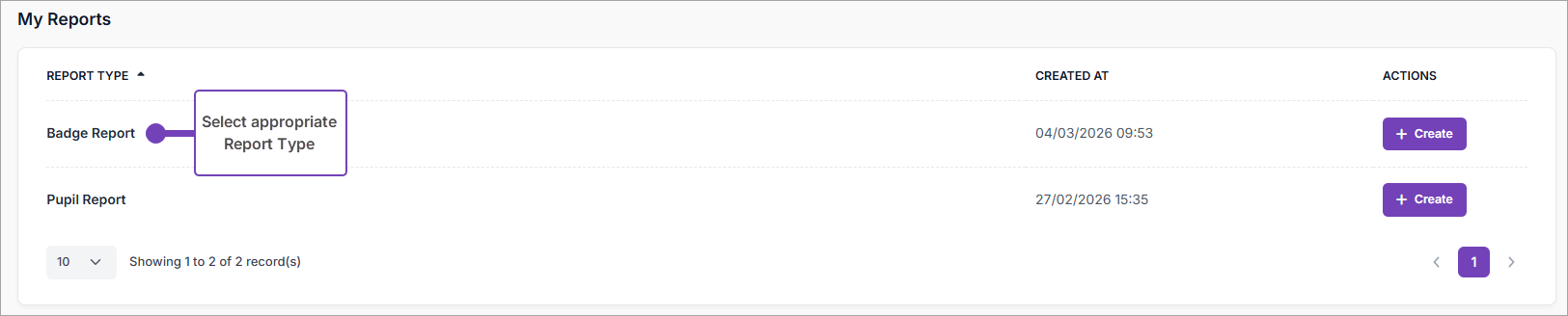 3. From the Reports page that opens, for example, Badge Reports or Pupil Reports: