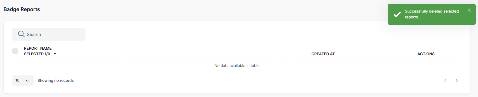 The reports are deleted. A message confirms this. The Reports page is updated to reflect the deletion: