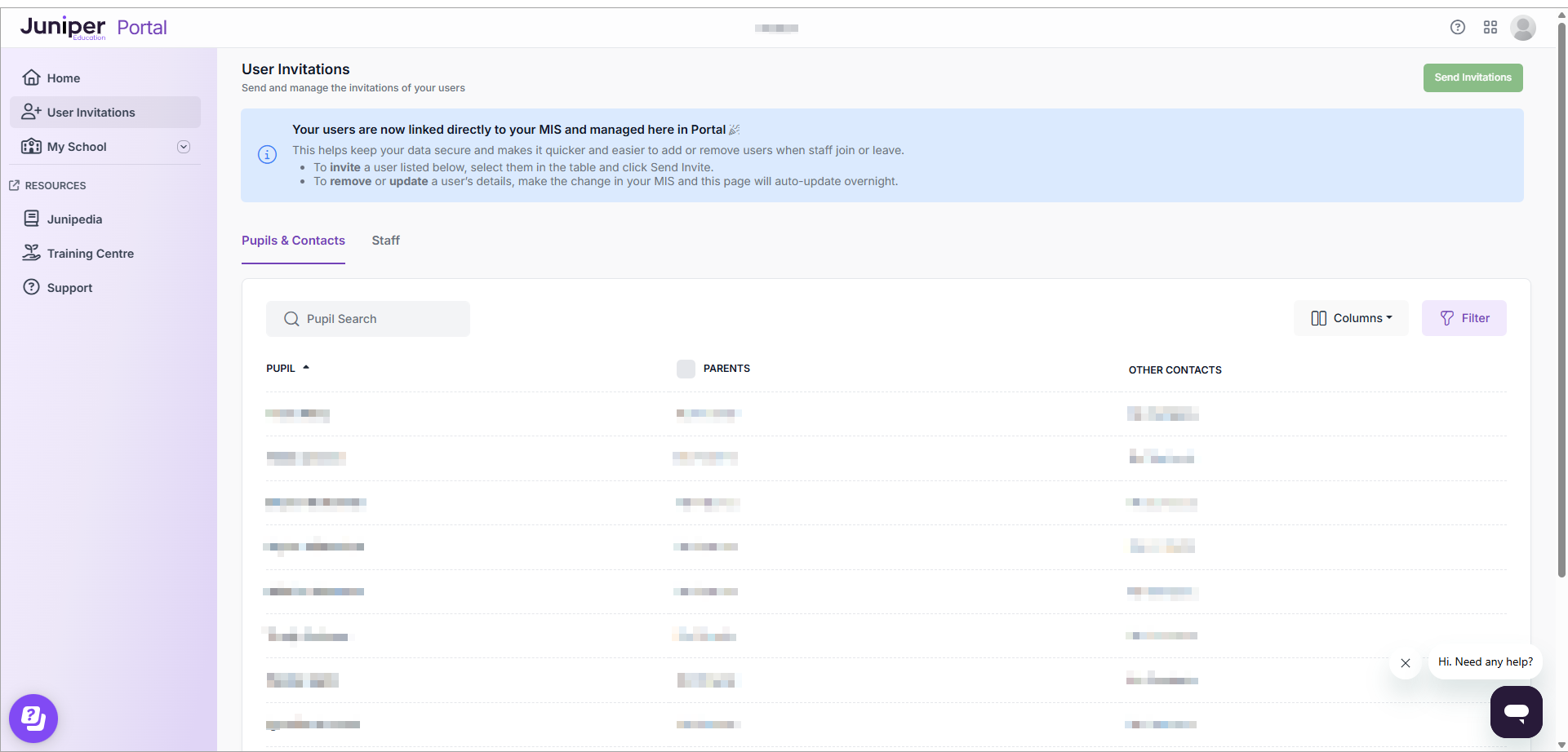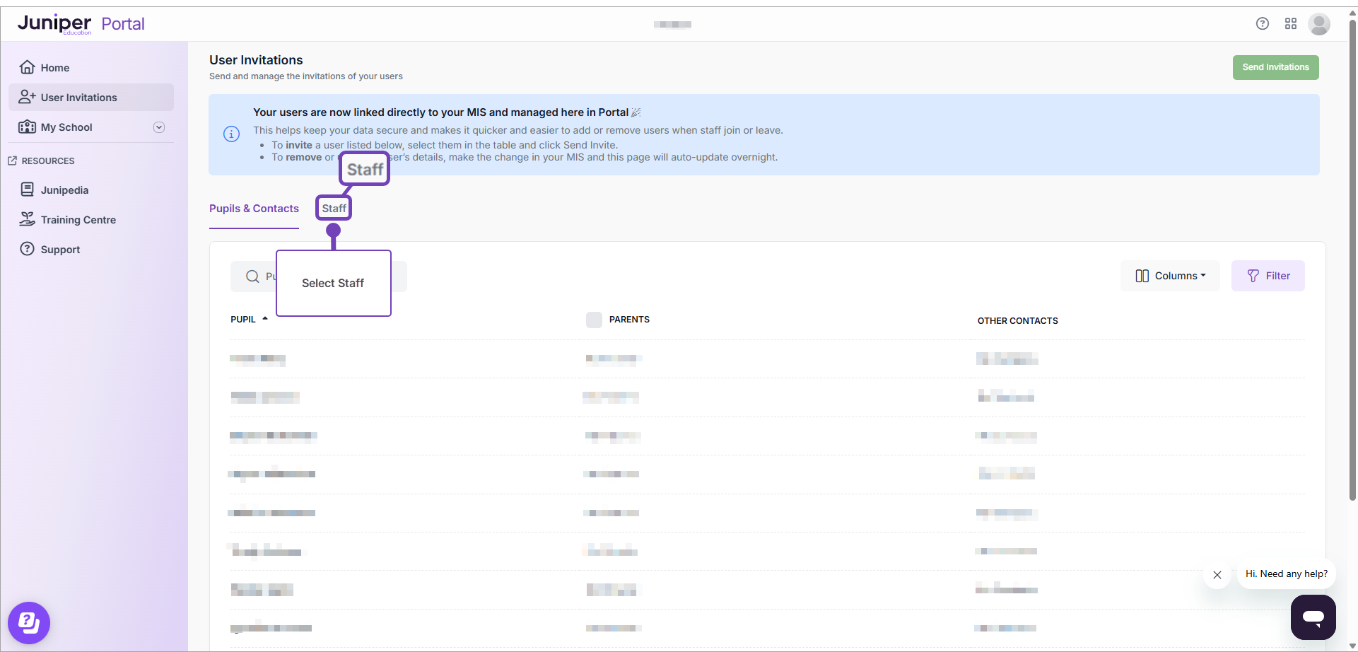 - Open the User Invitations page within Portal: