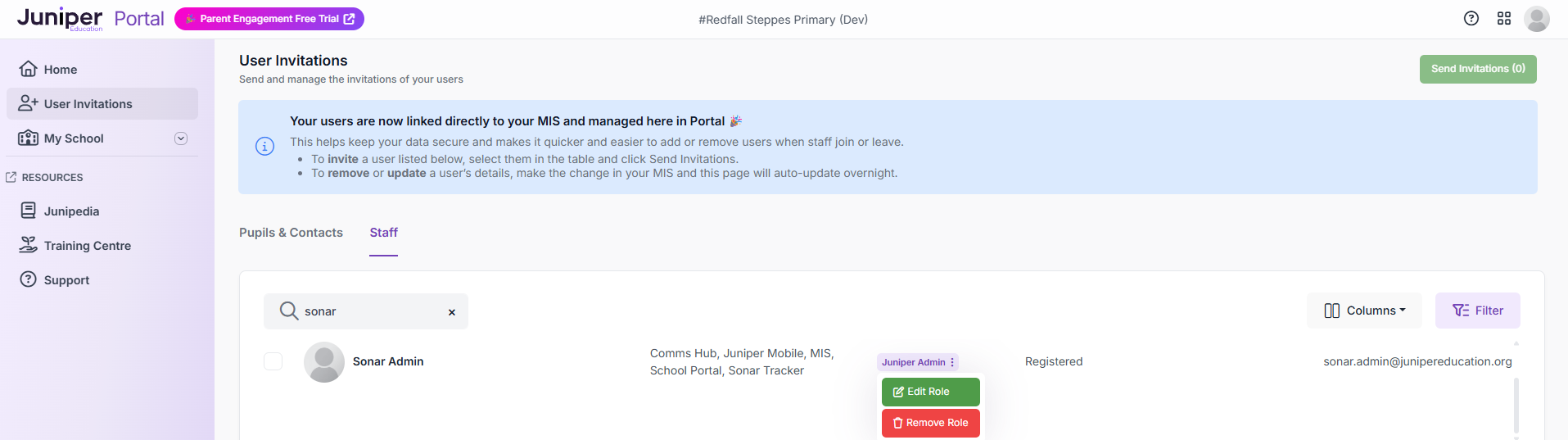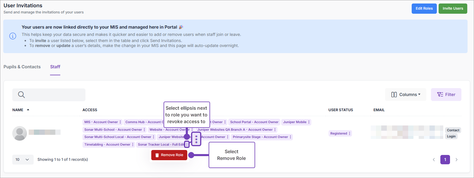 When a staff member leaves your school, their access to all Juniper Education products must be revoked. See Portal: How do I remove a staff member's access to all Juniper products? for further information.