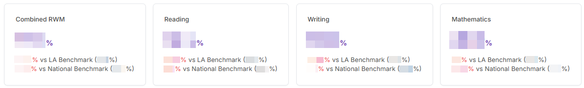 This headline figure shows Whole School % At (and above) for Combined Reading Writing and Mathematics for the selected Benchmark Period
