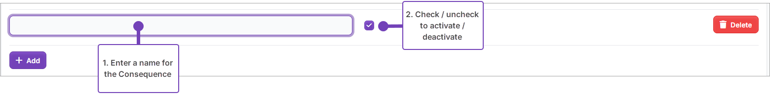 - Enter a name into the blank box for the Behaviour Consequence.