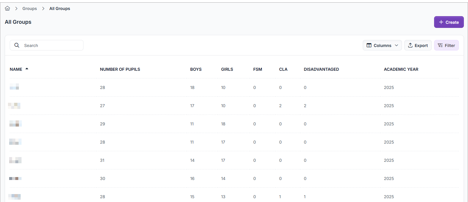 - From within the group, select the Pupils tab.