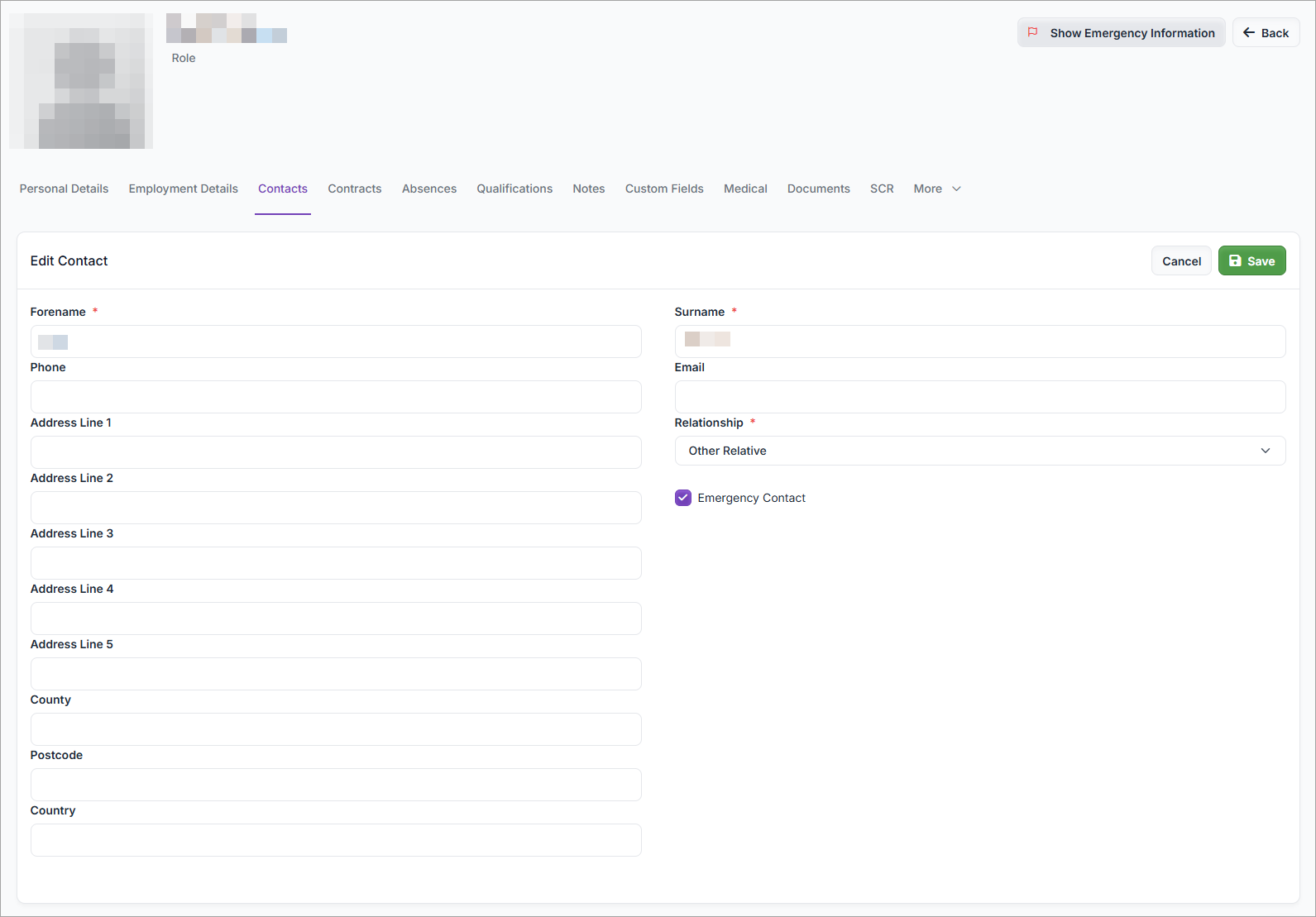 This article explains how to quickly make changes to a contact's details from within a staff record.