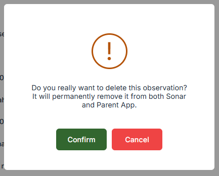 The observation will also be deleted in Sonar Tracker and the Juniper Education App.