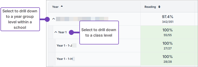 Select a School / Year to drill down to the next level of detail: